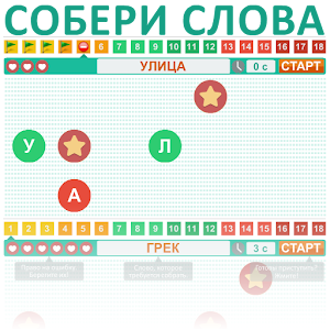 Собери слова - развивающая игра. На экране отображается загаданное слово, далее на рабочем поле на несколько секунд появляются буквы в произвольном порядке для того, чтобы игрок запомнил расположение букв на поле. После этого буквы исчезают и остаются ячейки. Играющий должен на память раскрыть буквы в том порядке, в котором они должны идти и собрать из букв показанное сначала слово. Слова разбиты по уровням, каждый уровень - это сочетание из времени задержки показа букв на поле и длины загаданного слова. Игрок может допустить не более 6 ошибок за весь период игры, количество жизней отображается в виде сердечек в левом верхнем углу экрана.Download Собери слова 2.0.1 APK